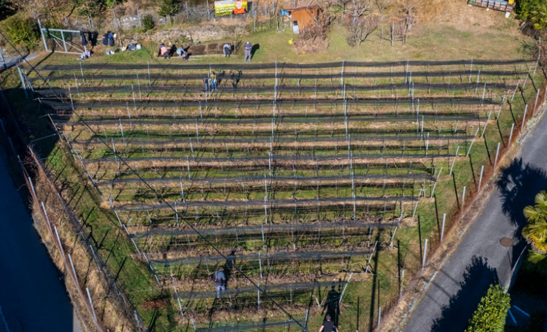 potatura,” racconta Domenico. “È stato anche creato un orto. Abbiamo zappato e a breve si andrà a piantumare.” Anche per la vendemmia si cercherà di coinvolgere le ragazze e i ragazzi di Arcegno in un raccolto come si faceva una volta. “Sarà un specie di festa, dove si lavorerà e mangerà insieme e si starà in compagnia.” Il vino sarà affinato nei tradizionali barili e nel 2024 saranno messe in vendita 500 bottiglie per finanziare l’associazione. “Abbiamo già le etichette con un disegno di Luca realizzato quando frequentava le elementari. Il tema era proprio “vendemmia in compagnia”. C’è un grappolo d’uva con il suo nome sopra.”
